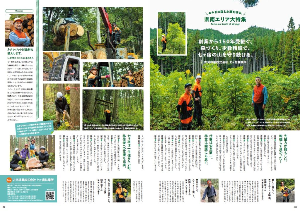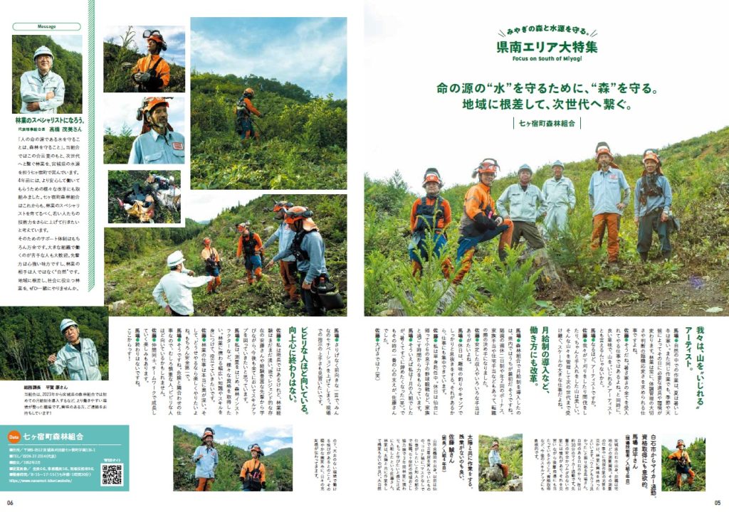 宮城県民の重要な「水瓶」を守る役割も果たしている林業にフォーカスを当てて,県南部にある4つの事業体をピックアップして紹介しています。