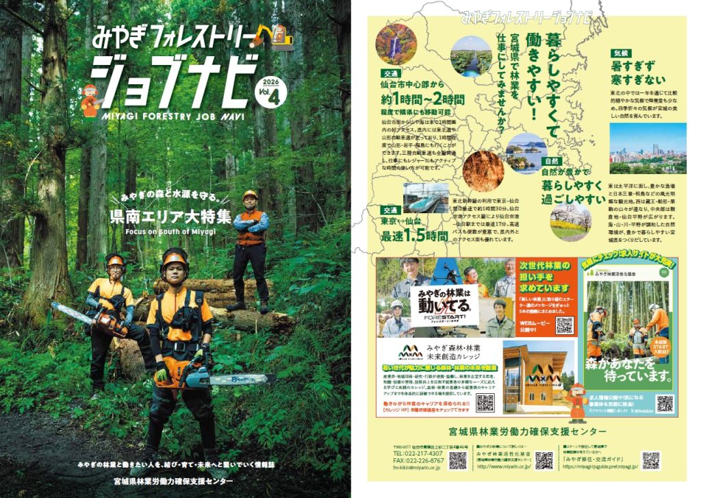山で働きたい方や林業の仕事がしたい方などを応援する就職情報誌「みやぎフォレストリー ジョブナビ」第4号を発刊いたしました!